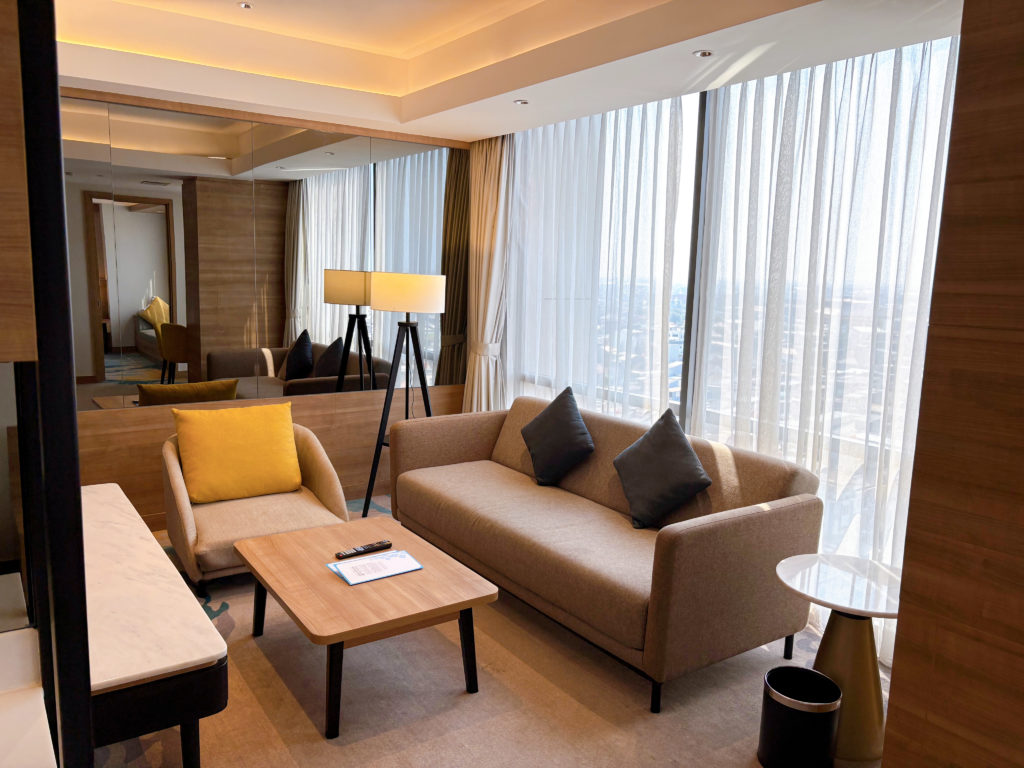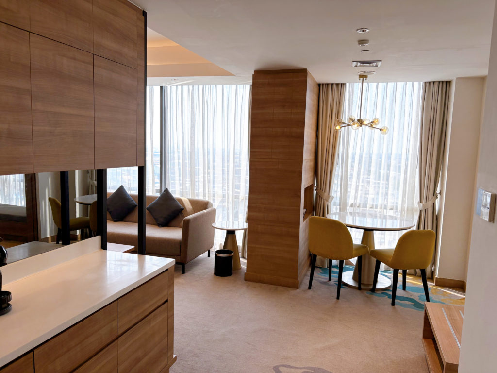 安かったので「キング1ベッドルームスイート」を直予約。ボトムのキングゲストルームが約1万円、倍の2万円出すと広々スイートルームに泊まれます。